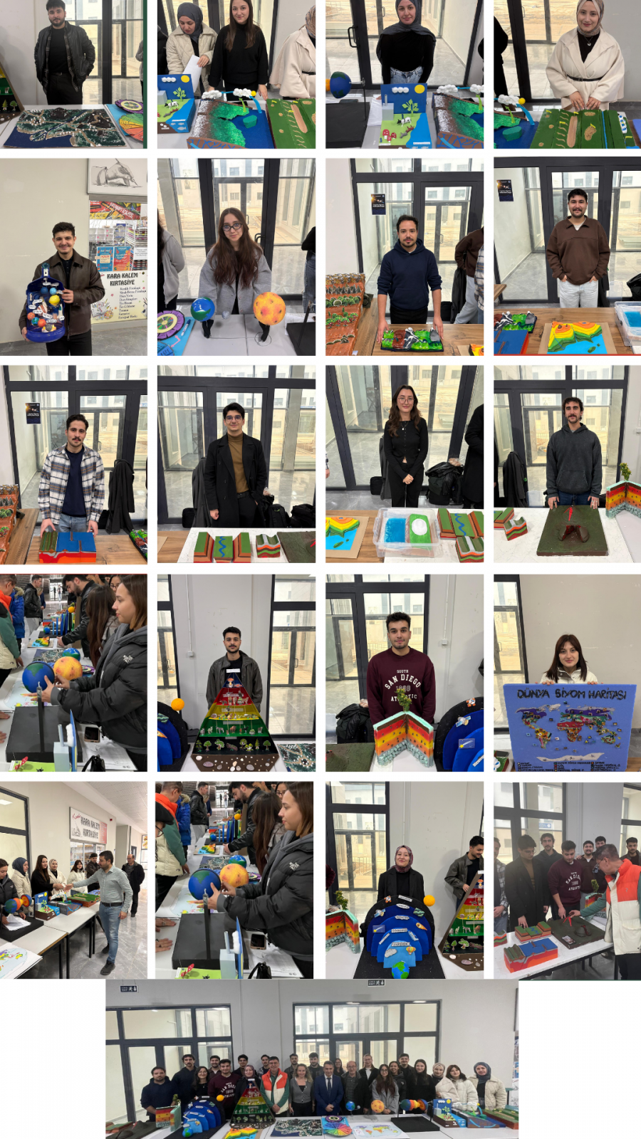 Ders sorumluluğunu Dr. Öğr. Üyesi H. Çamurcu’nun üstlendiği ders kapsamında hazırlanan materyaller, 23 Aralık 2025 Salı günü Eğitim Fakültesi zemin katında açılan sergiyle ziyaretçilere tanıtıldı. Sergide, coğrafya öğretiminde kullanılabilecek özgün ve uygulamaya dönük materyaller yer aldı.